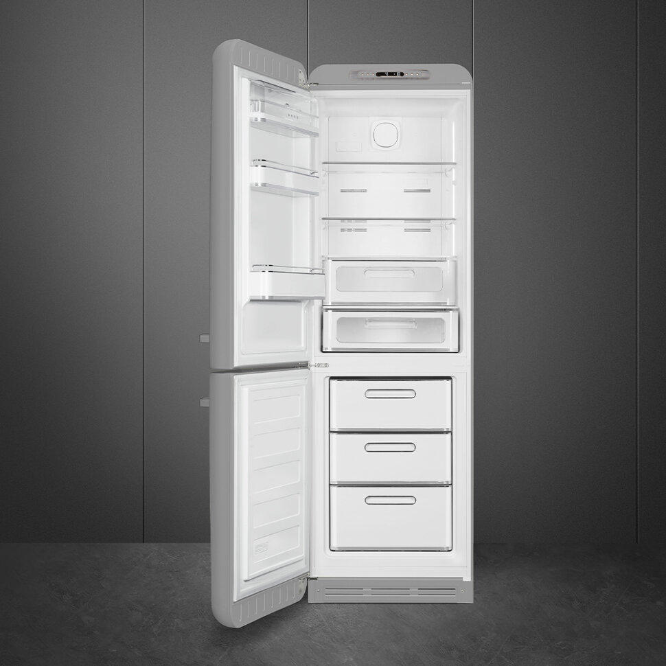 Холодильник SMEG FAB32LSV5 предназначен для кратковременного хранения различных готовых блюд, охлаждённых продуктов и напитков, а также для заморозки и длительного хранения замороженных продуктов и полуфабрикатов. Полки изготовлены из закалённого стекла, благодаря чему выдерживают большую нагрузку. Данная модель идеально подойдёт для авторских интерьеров в уникальном стиле или для кухонь в классическом исполнении.