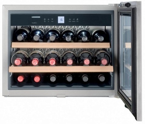 Климатический винный шкаф Liebherr WKEes 553 отличается своими небольшими габаритами, превосходный вариант для гостиной или кабинета. Две полки на телескопических направляющих способны вместить 18 бутылок (0,75л) вина. Цвет корпуса нержавеющей стали украсит интерьер в классическом стиле и будет великолепно сочетаться с современным дизайном помещения.