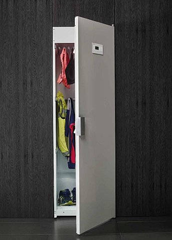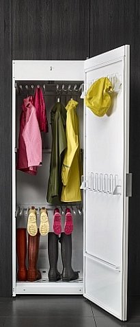 Прибор является отдельно стоящим и подключается к вентиляции для эффективной работы вытяжной системы. Перенавешиваемая дверь обеспечивает удобство эксплуатации вне зависимости от расположения. Нагревательный элемент и вентилятор находятся в верхней части, что обеспечивает максимально эффективное движение теплого воздуха. Наличие термовыключателя помогает регулировать температуру внутри, а плотно закрывающаяся при помощи уплотнительной ленты дверь снижает уровень шума.